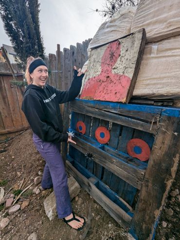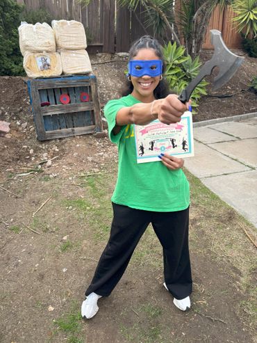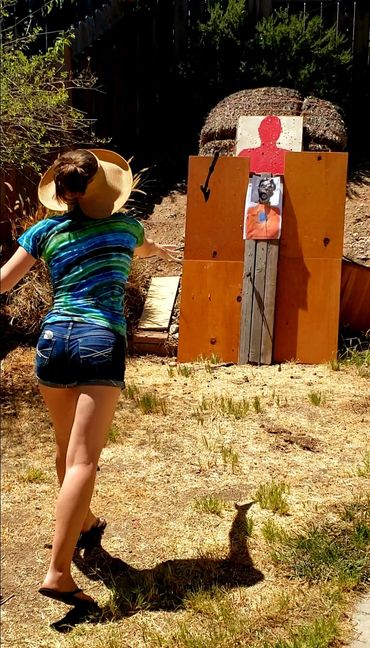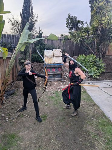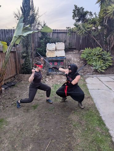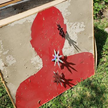 John prefaced before we got started that he is notoriously bad at throwing baseballs, footballs and sports of that nature so it made for an interesting challenge. On his first throw, somehow he hit a stone on the ground near the target area which broke one of the shuriken to give you an idea of where we were starting :D However, within a short period of time, we got him to successfully hit the target and get the shuriken to stick in 2 out of 3 tries by the end of our shuriken sheshion ;P