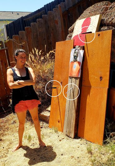 Here John hits the target directly in the center and it sticks to it's mark! Bam!!! Once you have initial success, the next question is ... Is that success repeatable, how often is it repeatable and how can you improve upon where you are? Did your brain and body mechanics embed the learning into your muscle memory so that you have to think about it less, not try as hard while having fun with successful effort and progress. John hit his mark again ... Eureka, he's got it!