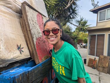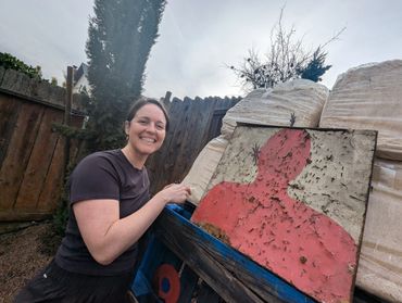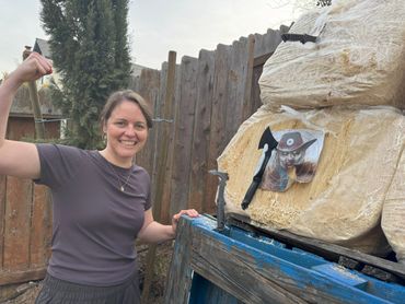 Started out with targeting the parts of it that she could break with her foot safely and then the axe to finish the job.